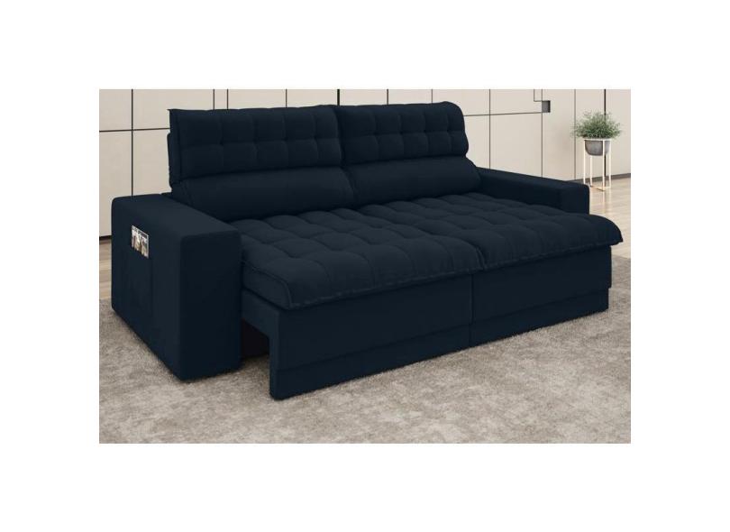 Sofá Daytona 2,50m Assento Retrátil e Reclinável Velosuede Petróleo - netsofas