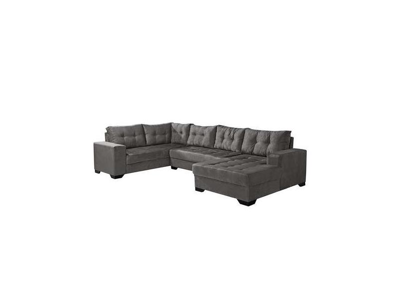 Sofá de Canto 5 Lugares Dijon com Chaise Suede Cinza - Mobly
