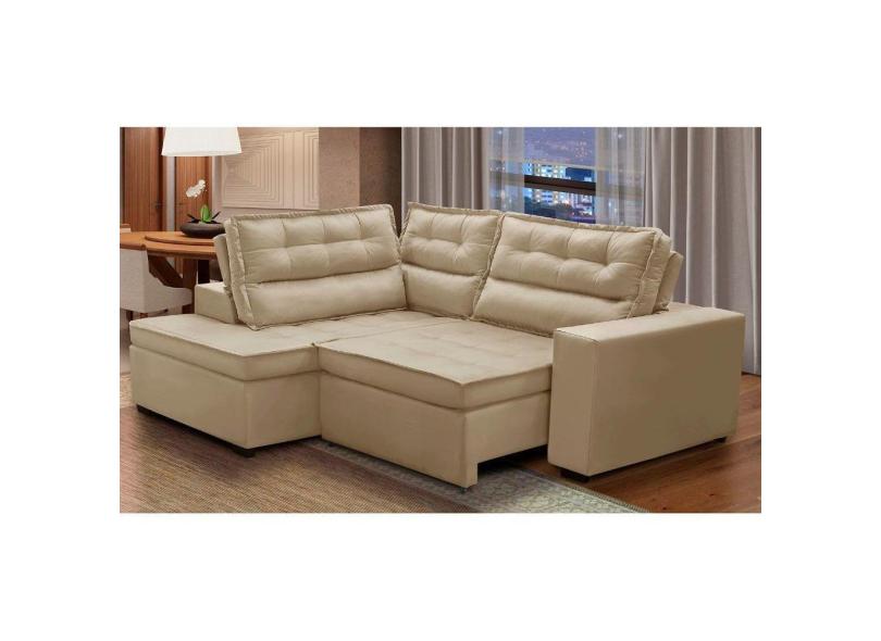 Sofá de Canto Retrátil e Reclinável com Molas 2,50x2,00 Esq Virginia Suede Bege Adonai Estofados