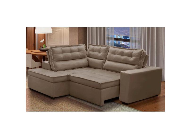Sofá de Canto Retrátil e Reclinável com Molas 2,50x2,00 Esq Virginia Suede Cappuccino Adonai Estofados