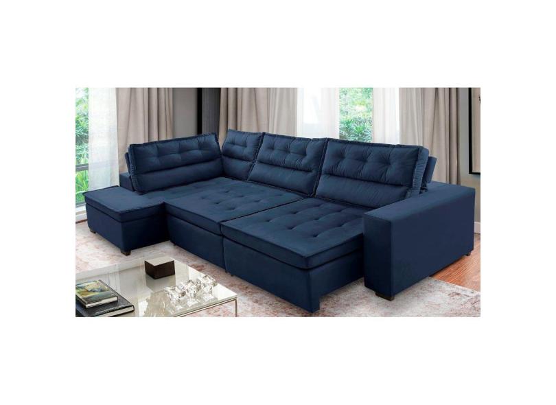 O menor preço encontrado no Brasil para Sofá de Canto Retrátil e Reclinável com Molas 3,00x2,00 Esq Virginia Suede Azul Adonai Estofados atualmente é R$ 3.041,91.