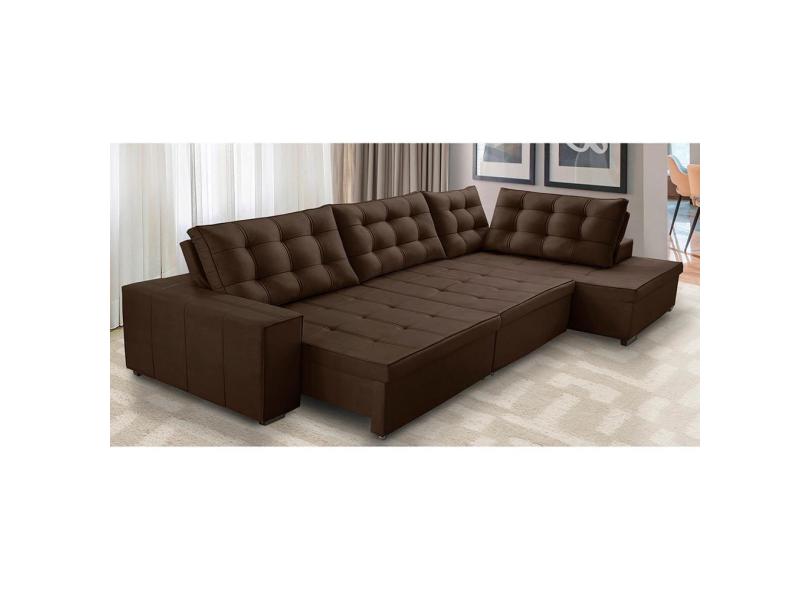 Sofá de Canto Retrátil e Reclinável com Molas 3,00x2,00 Jacke Suede Marrom Adonai Estofados