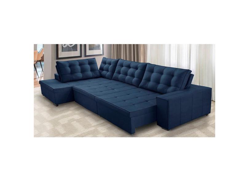 Sofá de Canto Retrátil e Reclinável com Molas 3,40x2,00 Esq Jacke Suede Azul Adonai Estofados