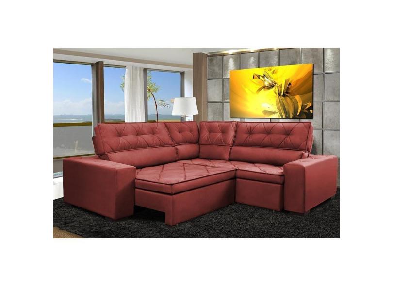 Sofa De Canto Retrátil E Reclinável Com Molas Cama Inbox Austin 2,40m X 2,40m Velusoft Vermelho