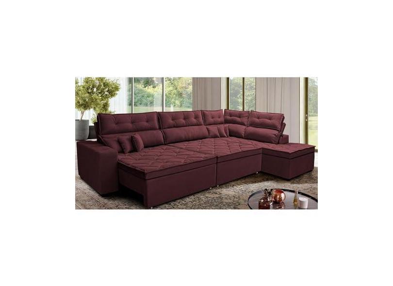 O menor preço encontrado no Brasil para Sofá de Canto Retrátil e Reclinável Direito 3,00x2,36m Molas Cama Inbox Espanha Velusoft Vinho atualmente é R$ 5.269,00.