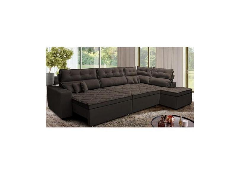 Sofá de Canto Retrátil e Reclinável Direito 3,40x2,36m Molas Cama Inbox Espanha Velusoft Café