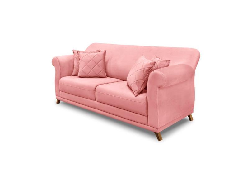 Sofá Decorativo 160cm 2 Lugares Com 4 Almofadas Armstrong Veludo Rosa - Gran Belo
