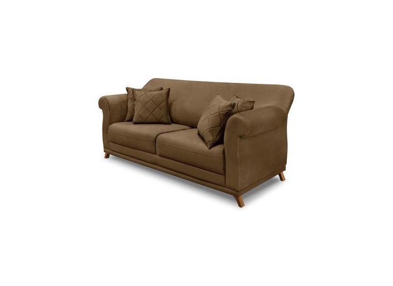 Sofá Decorativo 200cm 3 Lugares Com 4 Almofadas Armstrong Suede Carame