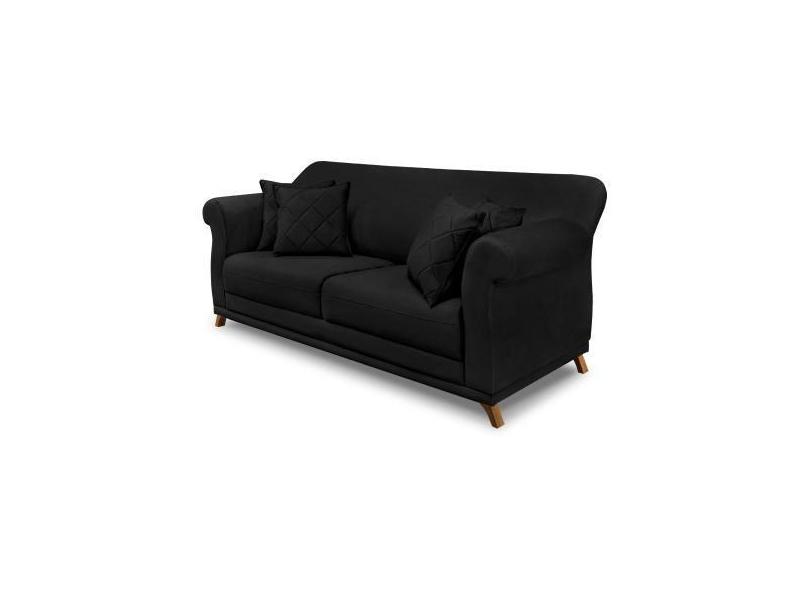 Sofá Decorativo 200cm 3 Lugares Com 4 Almofadas Armstrong Suede Preto