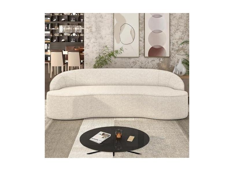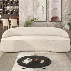 Sofá Decorativo 3 Lugares 210cm Joel Curvo com Encosto Linho Bege G15 - Gran Belo