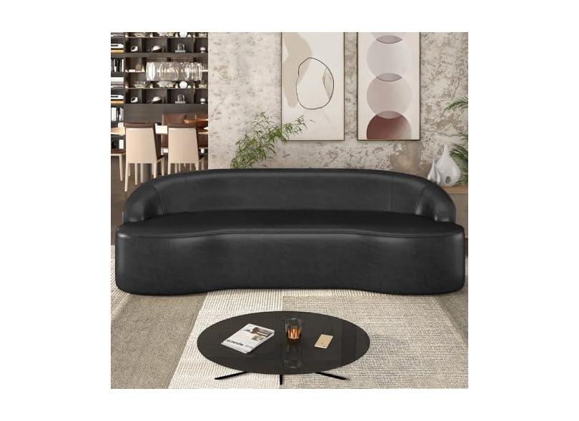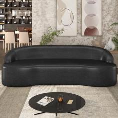 Sofá Decorativo 3 Lugares 210cm Joel Curvo com Encosto PU Preto G15 - Gran Belo