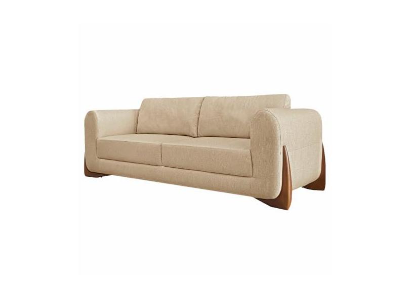 Sofá Decorativo 3 Lugares 220cm Pés em Madeira Buzz Linho Bege G63 - Gran Belo