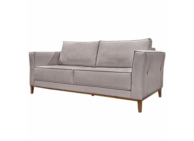 Sofá Decorativo 3 Lugares 230cm Pés Em Madeira Tarantino Linho Areia Rústica - Gran Belo