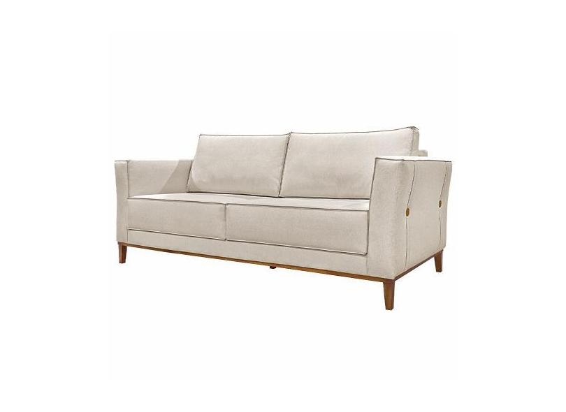 Sofá Decorativo 3 Lugares 230cm Pés Em Madeira Tarantino Linho Pérola