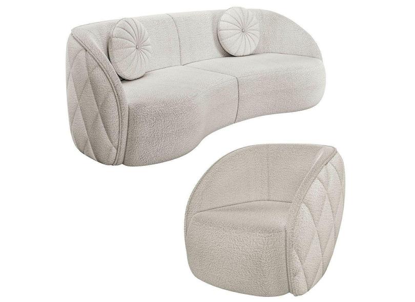 O menor preço encontrado no Brasil para Sofá Decorativo 3 Lugares 288cm Com Almofadas E Poltrona Zion M22 Bouclê Branco - Mpozenato atualmente é R$ 8.319,60.
