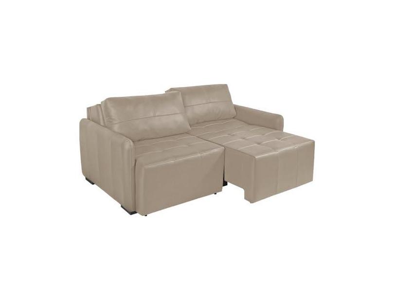 Sofá Decorativo 3 Lugares Sala de Estar 220cm Reclinável e Retrátil Kassandra Couro Bege G34 - Gran Belo