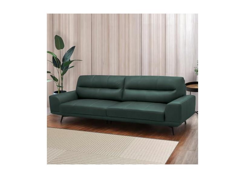 Sofá Decorativo Ashton 3 Lugares Sala de estar 256cm Pés em Aço Couro Verde Musgo G88 - Gran Belo