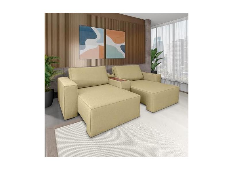 Sofá Decorativo Automatizado Shogun 252cm Reclinável 6 Posições Retrátil c/Console Central Entrada USB Bluetooth Linho Dourado G33 - Gran Belo