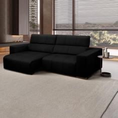 Sofá Decorativo Barbosa 3 Lugares Sala De Estar 230cm Reclinável E Retrátil Couro Preto