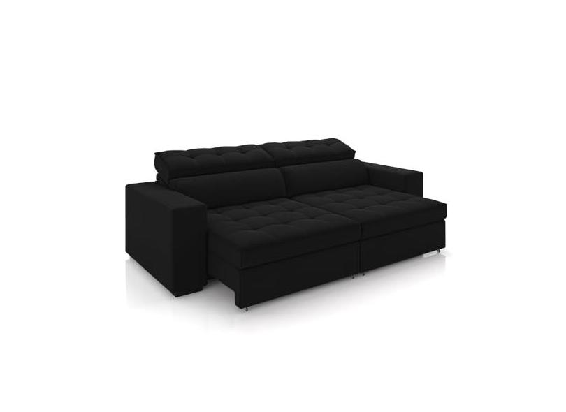 Sofá Decorativo Hugo 2 Lugares 246cm Reclinável e Retrátil Veludo Preto G45 - Gran Belo