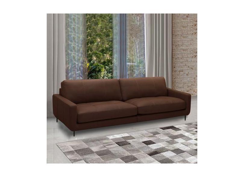 Sofá Decorativo Isaac 3 Lugares Sala De Estar 210cm Pés Em Aço Couro M