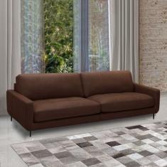 Sofá Decorativo Isaac 4 Lugares Sala De Estar 270cm Pés Em Aço Couro Marrom Chocolate