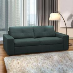 Sofá Decorativo Mendes 3 Lugares Sala de estar 235cm Pés em Madeira Couro Verde Musgo G88 - Gran Belo