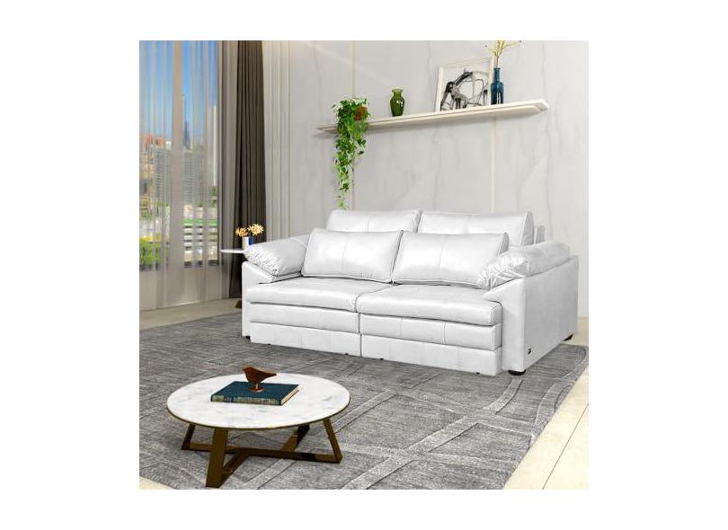 Sofá Decorativo Piece Bipartido Retrátil Sala de Estar 215cm Couro Branco G58 - Gran Belo