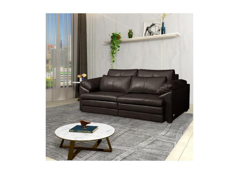Sofá Decorativo Piece Bipartido Retrátil Sala de Estar 215cm Couro Marrom G58 - Gran Belo