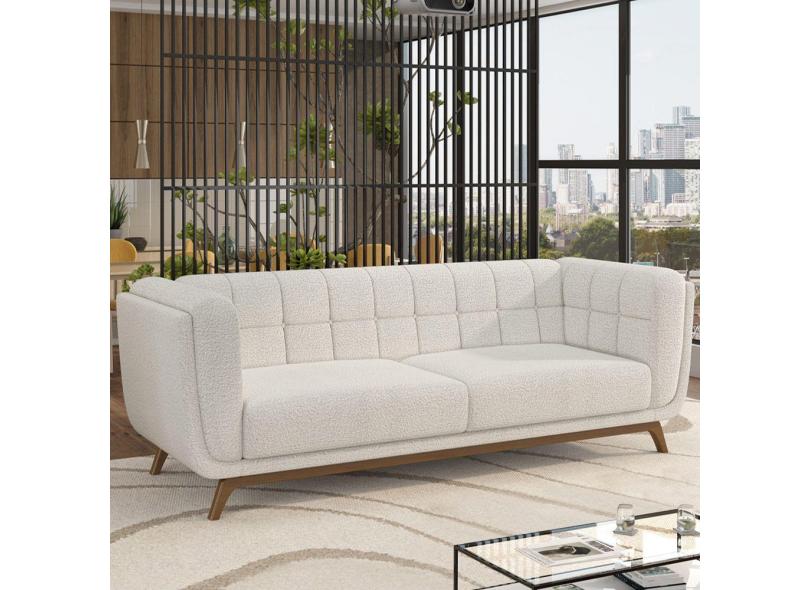 Sofá Decorativo Sala De Estar 240Cm Rocket 3 Lugares Base Madeira Boucle Branco G45 - Gran Belo
