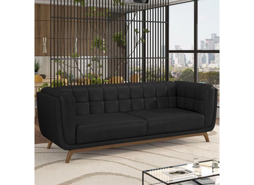Sofá Decorativo Sala De Estar 240Cm Rocket 3 Lugares Base Madeira Pu Preto G45 - Gran Belo