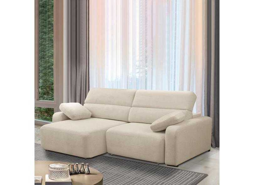 Sofá Decorativo Sala De Estar ícaro 3 Lugares 220cm Reclinável E Retrátil Bouclê Bege Claro
