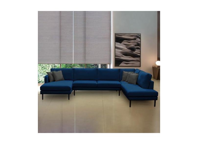 Sofá Decorativo Sala de Estar Osaka 340cm Modulado em U com Almofadas Pés em Madeira Linho Azul Marinho G89 - Gran Belo