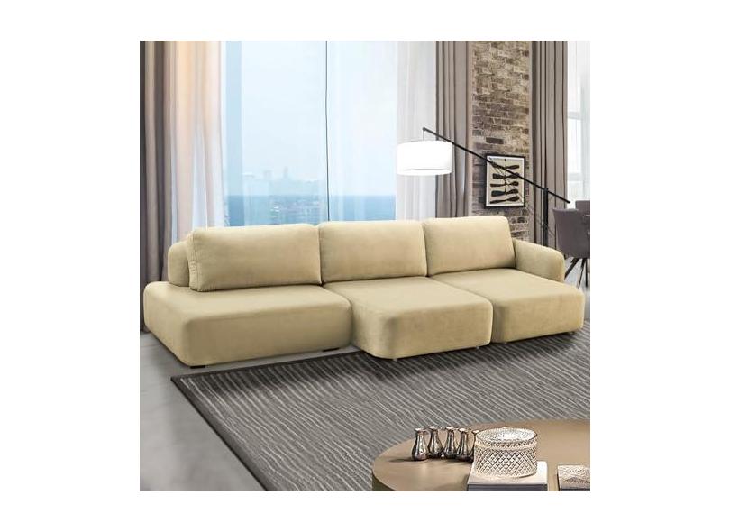 Sofá Decorativo Santiago 5 Lugares 342cm Sala de Estar Retrátil Modulado Bouclê Bege G89 - Gran Belo