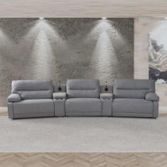 Sofá Decorativo Swift c/Porta Copos Baú Cooler Reclinável Retrátil Linho Cinza Claro G81 - Gran Belo