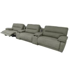 Sofá Decorativo Swift Elétrico Reclinável c/Porta Copos Baú Cooler Linho Cinza G81 - Gran Belo