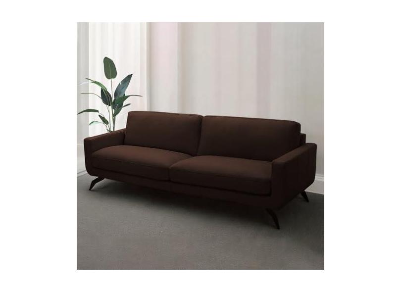 Sofá Decorativo Thalia 3 Lugares Sala de estar 240cm Pés em Aço Couro Marrom Chocolate G88 - Gran Belo