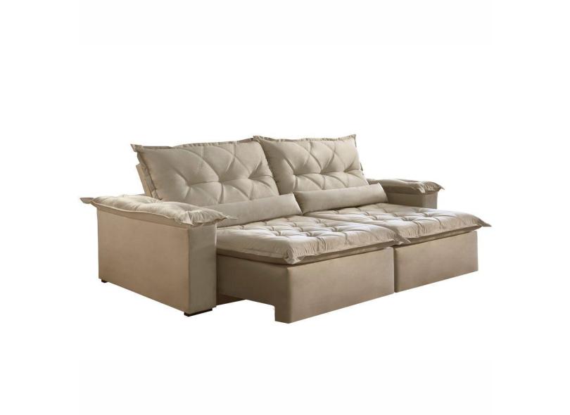 Sofá Diamantina 230cm Retrátil e Reclinável Bege