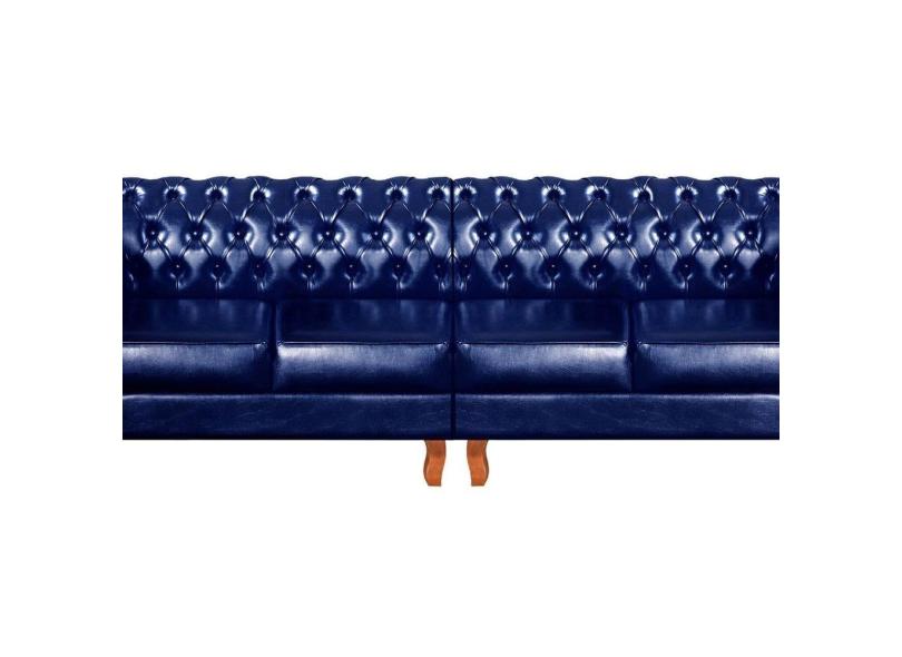 Sofá Dom Pedro Chesterfield Modulado 4 Lugares 2 Poltronas Decoração Sara Recepção Sintético Azul