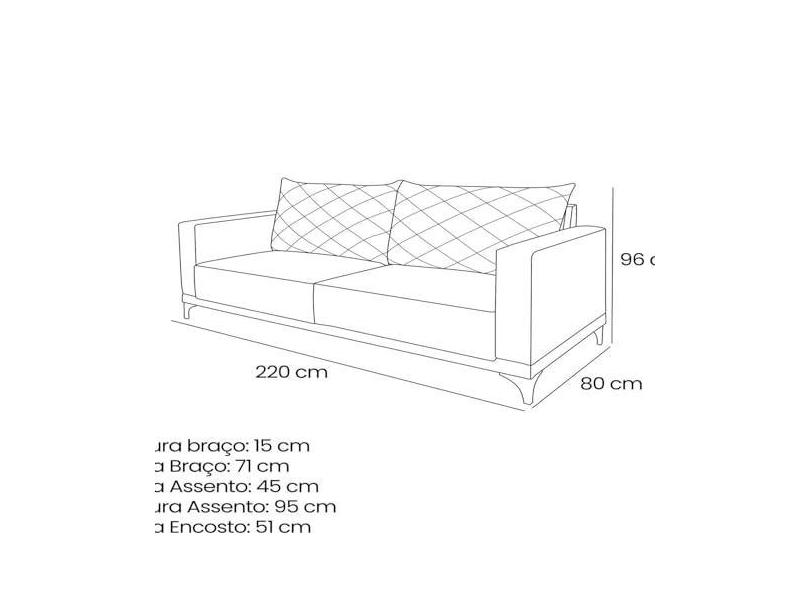 Sofá Eliot 3 Lugares 220 Cm Linho Boucle Bege