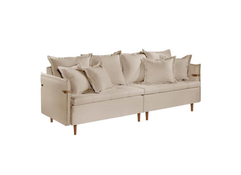 Sofá Fixo Atlas 3 Lugares Luxo 1,80 M Castellar Móbile Veludo Bege Claro