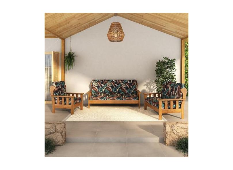 Sofá Fixo Confortável 3 Lugares Nathalia Mogno Mel - Moveis Nathalia