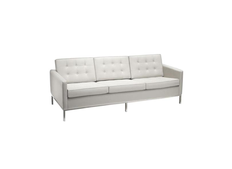 Sofa Florence Knoll 3 Lugares Cromado Em Couro Natural Branco
