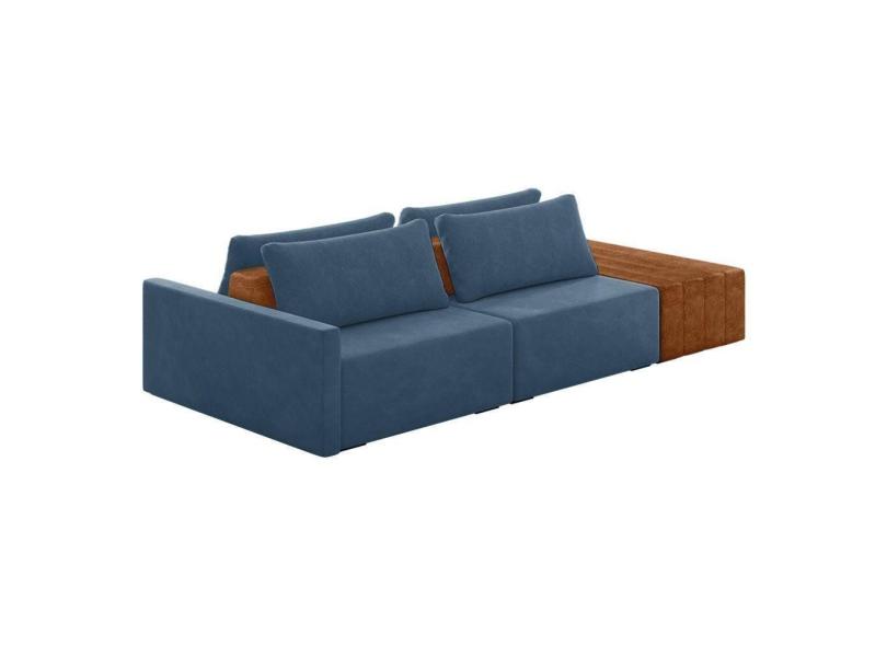 Sofá Ilha 2 Lugares Living 272cm Modulado Lary Veludo K01 Cor Azul Marinho