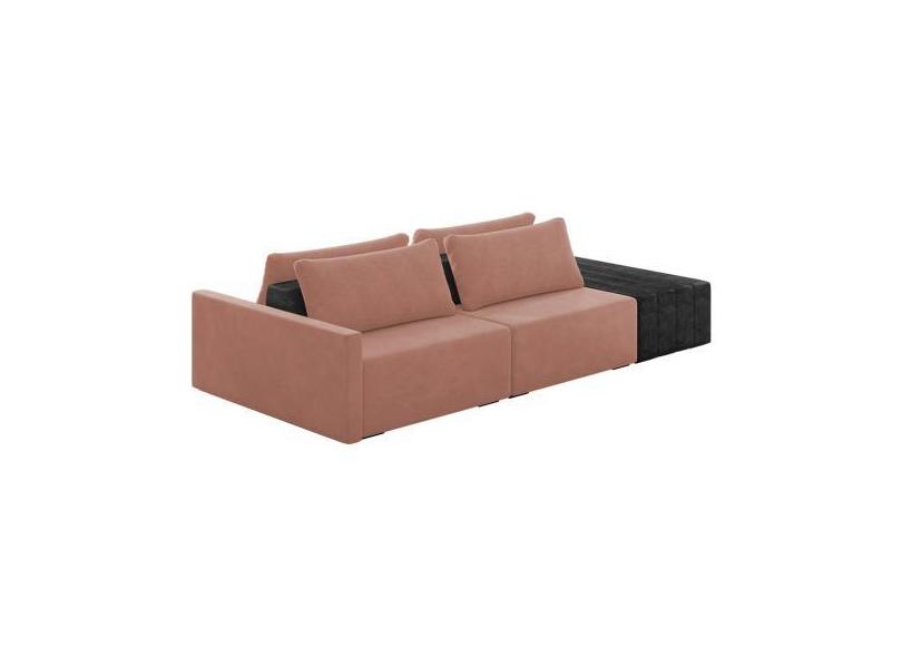Sofá Ilha 2 Lugares Living 272cm Modulado Sala Lary Veludo Rosê/PU Pto