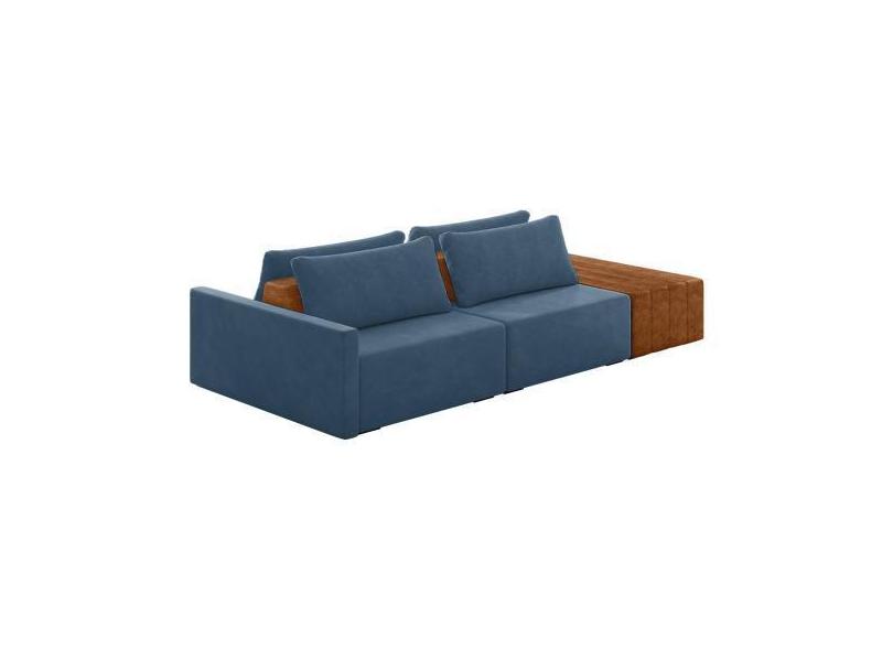 Sofá Ilha 2 Lugares Living 292cm Modulado Para Sala Lary Veludo Azul M