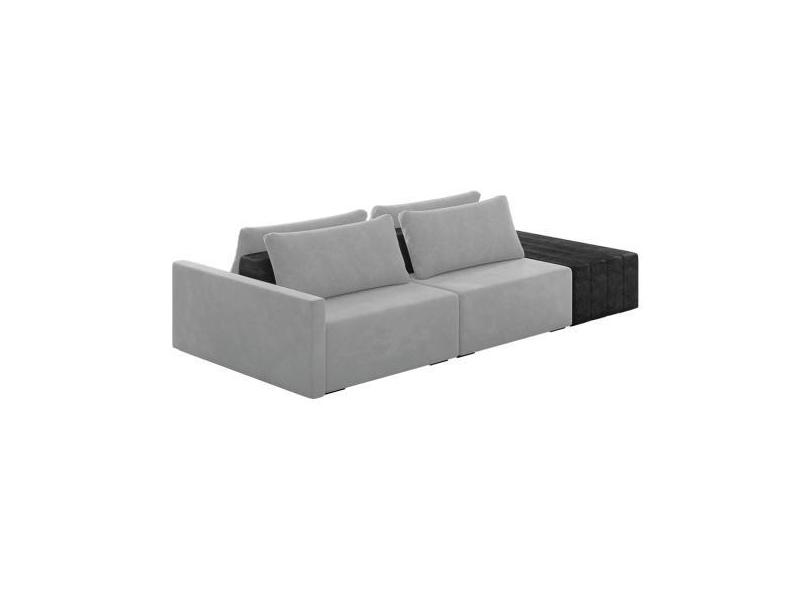 Sofá Ilha 2 Lugares Living 292cm Modulado Sala Lary Veludo Cinza/PU Pt