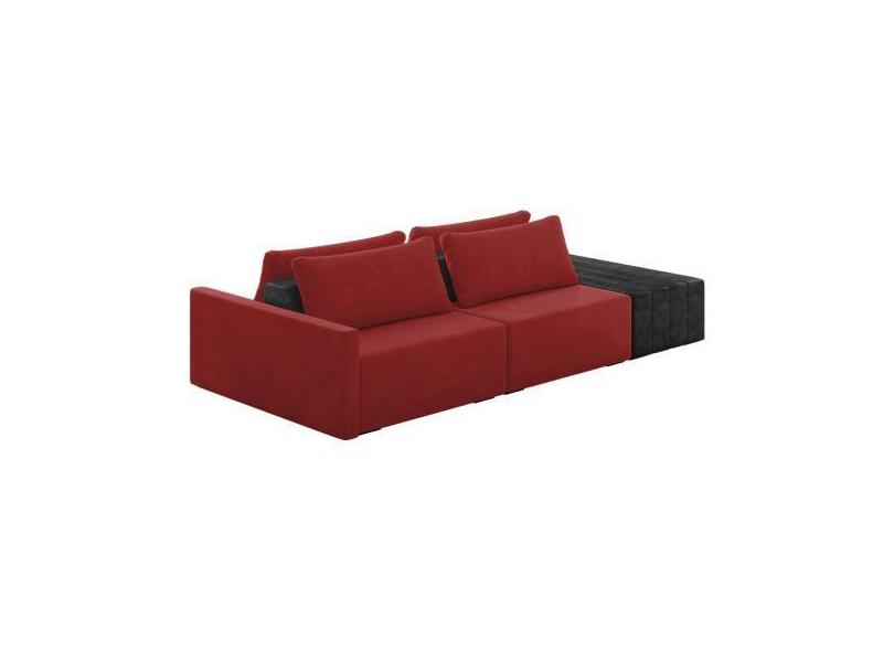 Sofá Ilha 2 Lugares Living 292cm Modulado Sala Lary Veludo Vermelho/Pu