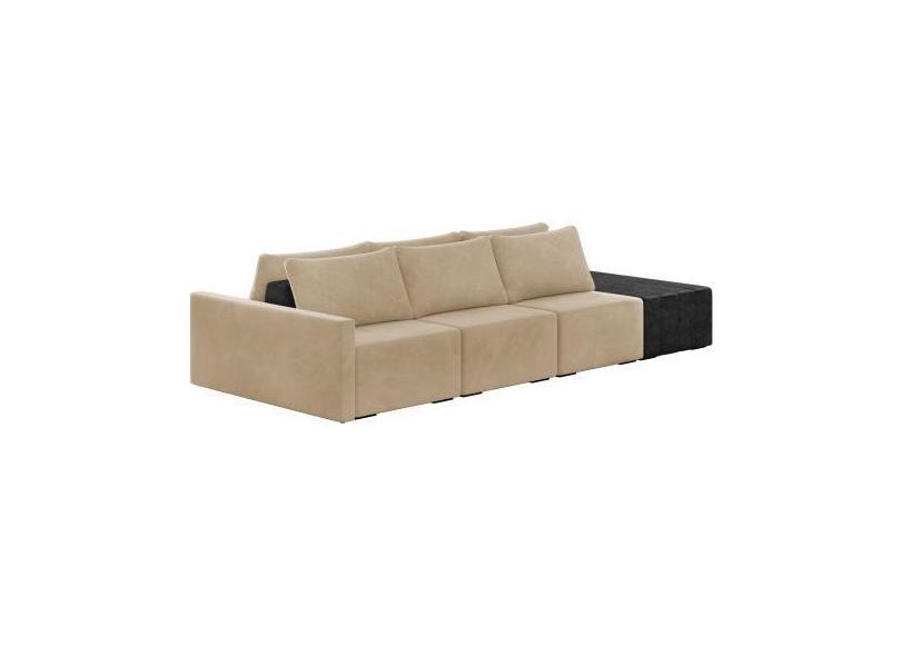Sofá Ilha 3 Lugares Living 312cm Modulado Sala Lary Veludo/Pu Pto K01