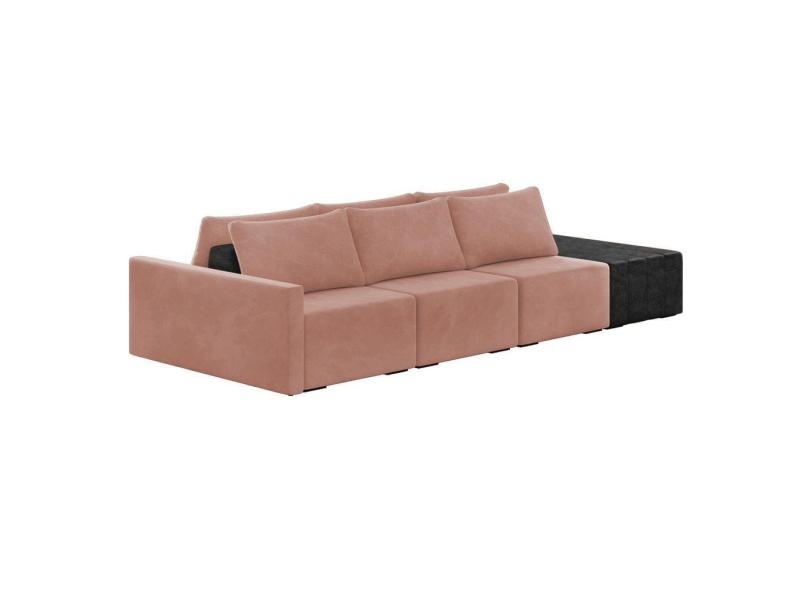 Sofá Ilha 3 Lugares Living 312cm Modulado Sala Lary Veludo Rosê/PU Pto K01 - D`Rossi
